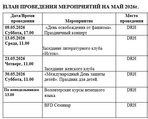 ПЛАН МЕРОПРИЯТИЙ НА МАй 2026г.