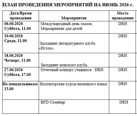 ПЛАН МЕРОПРИЯТИЙ НА ИЮНЬ 2026г.