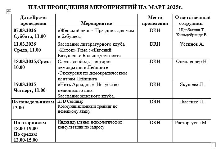ПЛАН МЕРОПРИЯТИЙ НА МАРТ 2026г.